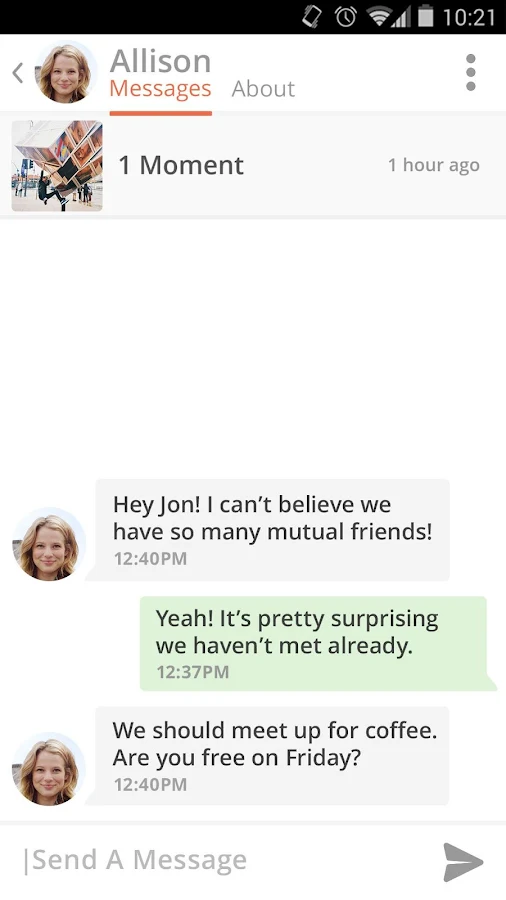 إذا اخترت شخصا أعجبته بدورك، يمكنكما البدء في الدردشة. إن الأمر بهذه السهولة. يتطلب فقط بضع الدقائق، ويمكنك البدء في الحديث مع أي شخص تتطابق اهتماماته مع اهتماماتك أو مع شخص أعجبك.