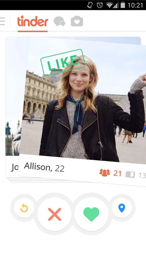 Tinder تطبيق للمغازلة والمواعدة. بفضله، يمكنك بسرعة إيجاد أناس بالقرب منك لديهم نفس الإهتمامات.